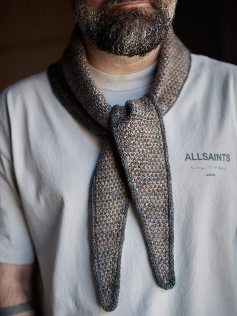 Meet the Metropolis Bandana: our favourite way to play with the Metropolis colour stories. We paired a graphic three-colour linen stitch with a polished i-cord edge for a look that’s all about texture and tone. It’s an elongated triangle that sits just right around the neck. It’s simple, intentional, and made to be worn.