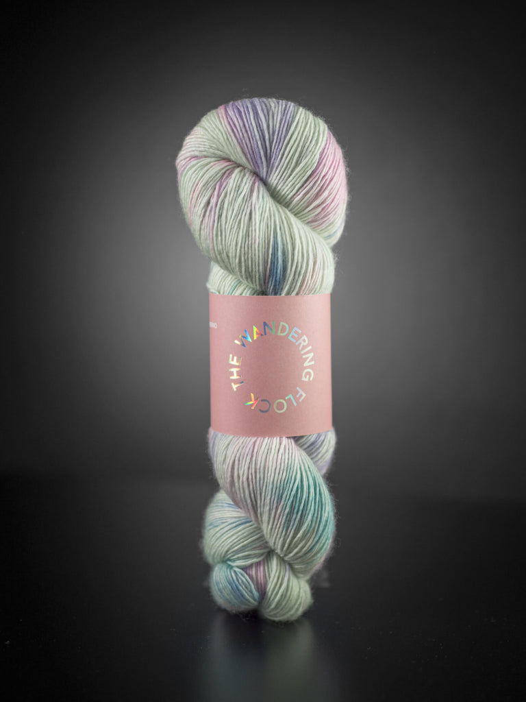 Fingering Singles is The Wandering Flock's most versatile base. This single-ply beauty is crafted from merino wool with a cashmere-like micron count and it soaks up dye beautifully, showing off rich colours with a gentle sheen. Perfect for garments, but equally lovely for shawls and hats, this yarn offers endless possibilities. Use it on its own for a soft, flowing fabric, or pair it with mohair (or double it up!) to play with colour marling and create unique textures.