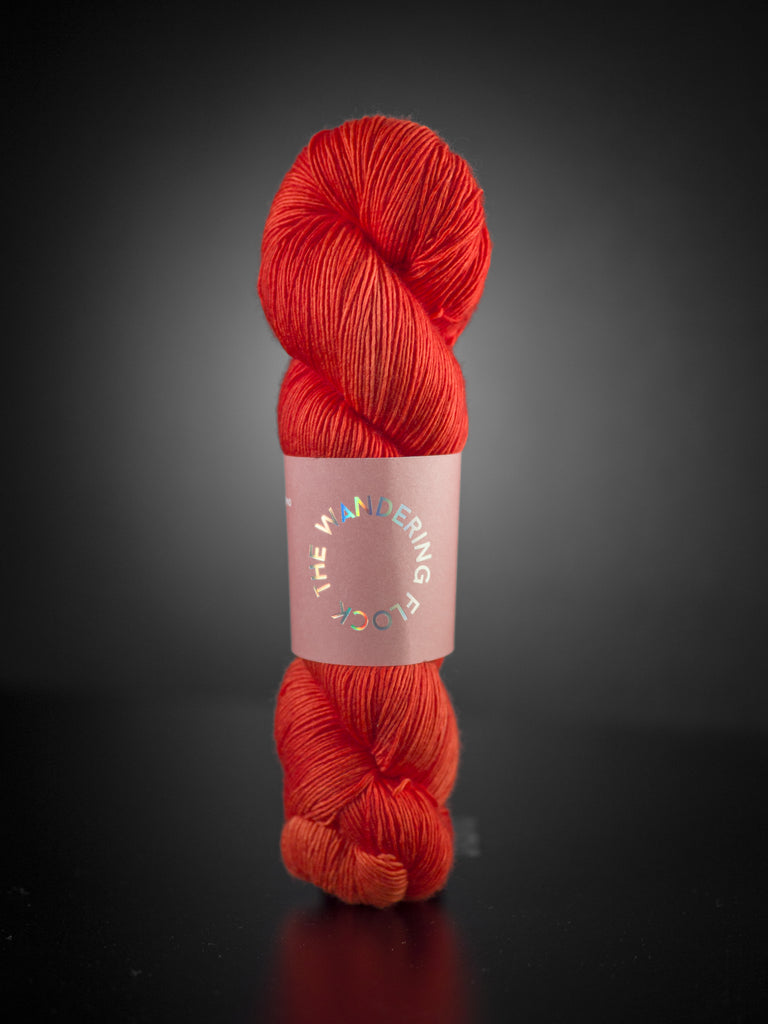 Fingering Singles is The Wandering Flock's most versatile base. This single-ply beauty is crafted from merino wool with a cashmere-like micron count and it soaks up dye beautifully, showing off rich colours with a gentle sheen. Perfect for garments, but equally lovely for shawls and hats, this yarn offers endless possibilities. Use it on its own for a soft, flowing fabric, or pair it with mohair (or double it up!) to play with colour marling and create unique textures.