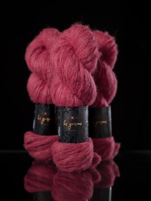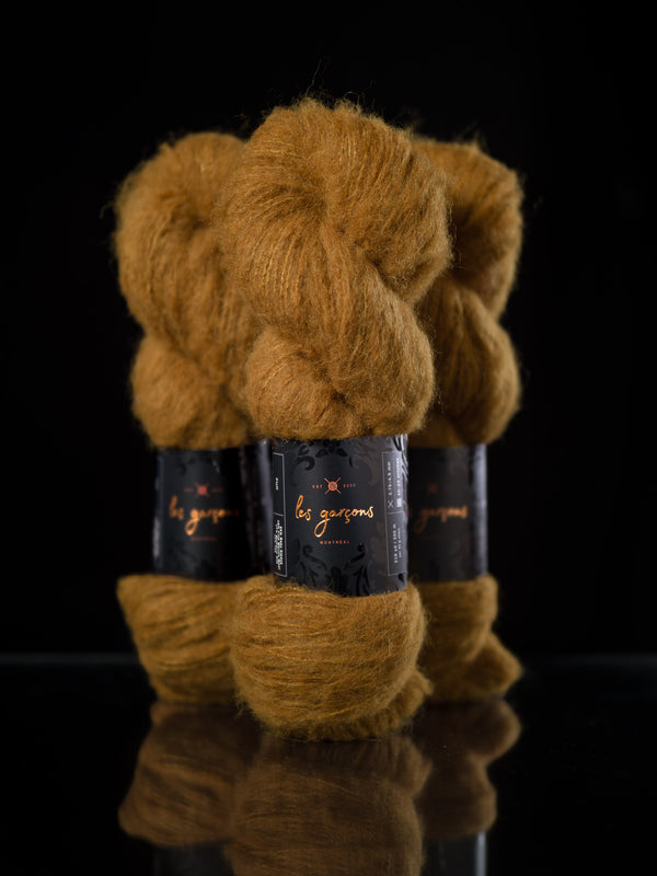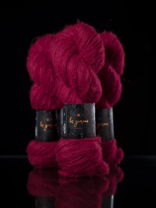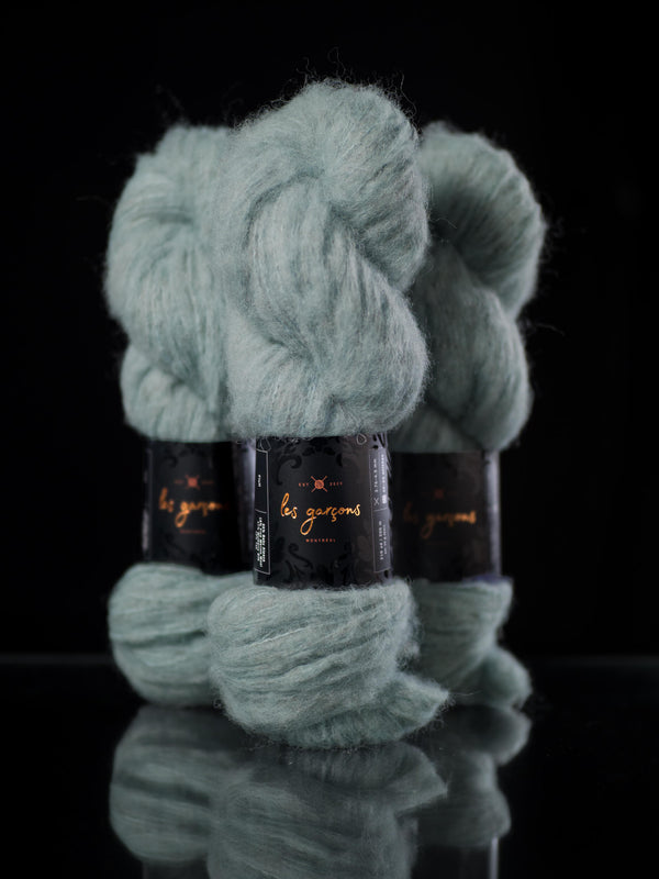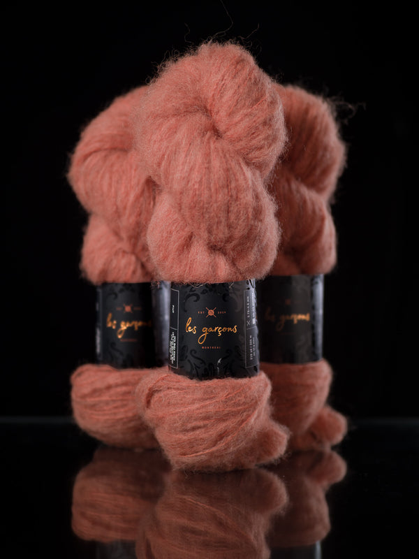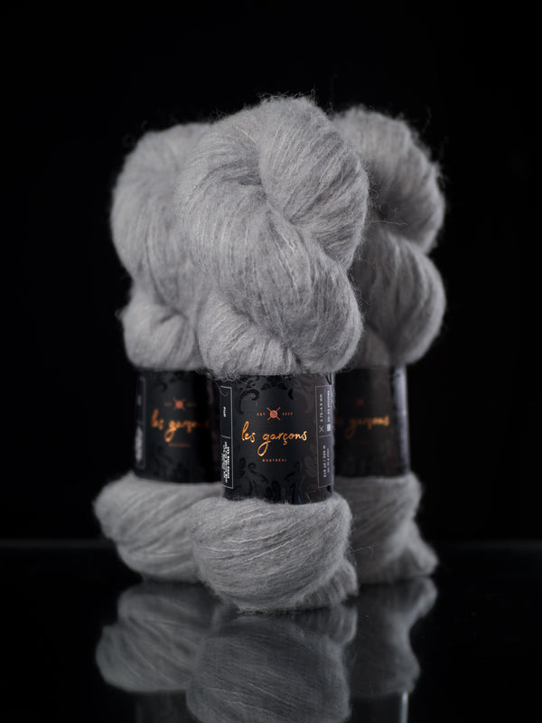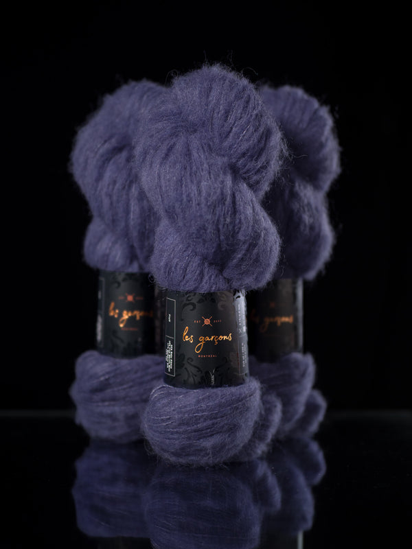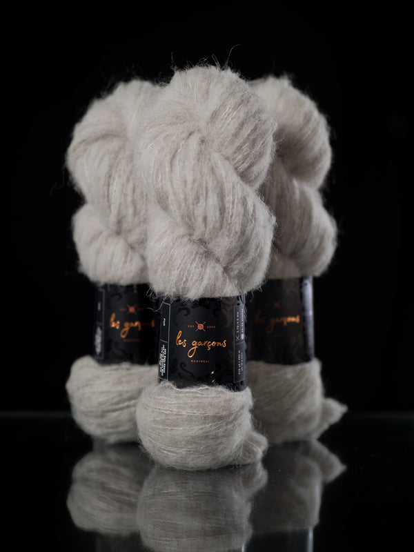 We are pleased to introduce our newest yarn, Fluff, a collaboration between Les Garçons, and Walcot Yarns. Spun out of friendship, Fluff is a dreamy blend of baby alpaca, merino, silk and yak. It’s a truly unique brushed yarn that we’ve designed specifically to be worked on its own at a sport weight on a wide range of needle sizes!