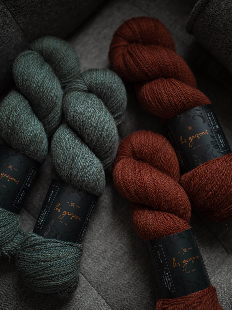 The kit includes the following colourways in the required quantities on British 4-Ply from Les Garçons. The pattern is not included; it is available in our shop or on Ravelry.