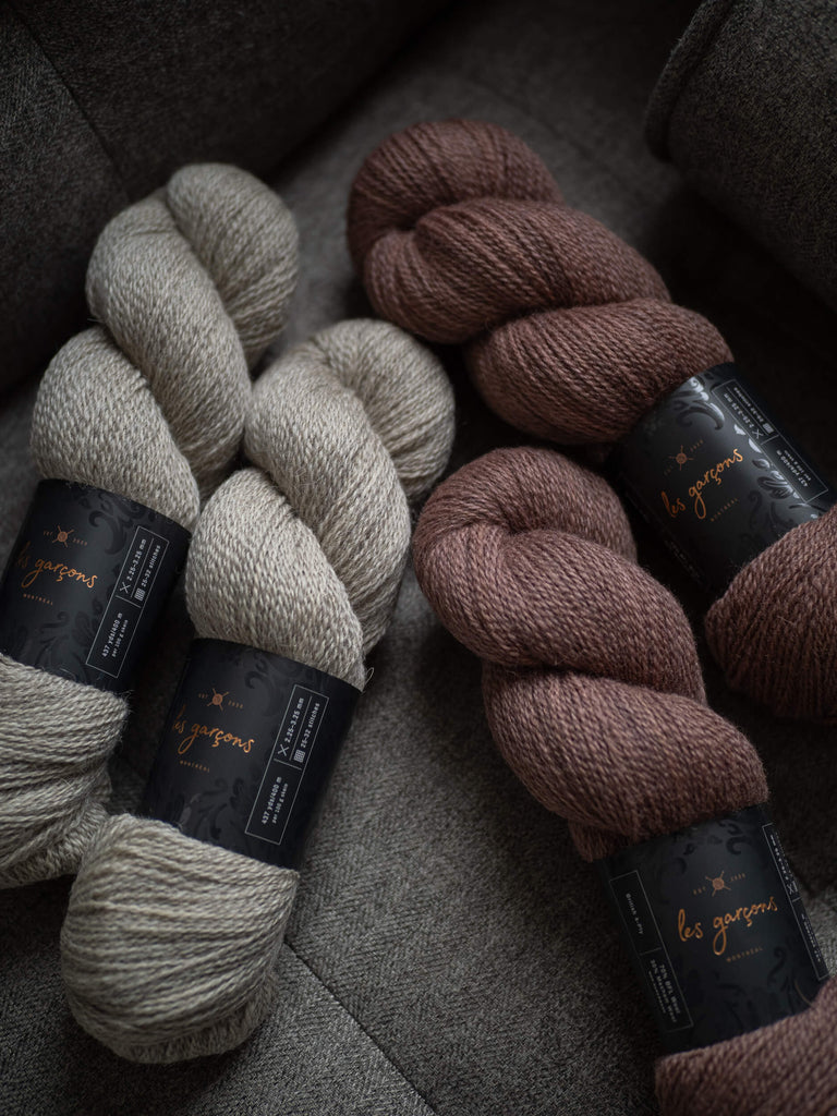 The kit includes the following colourways in the required quantities on British 4-Ply from Les Garçons. The pattern is not included; it is available in our shop or on Ravelry.