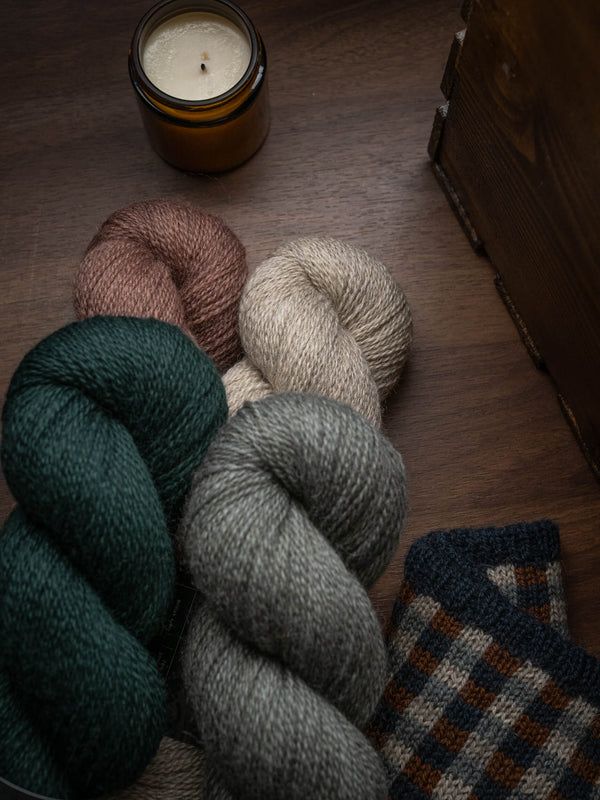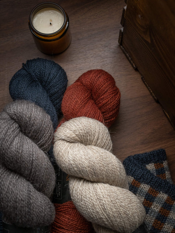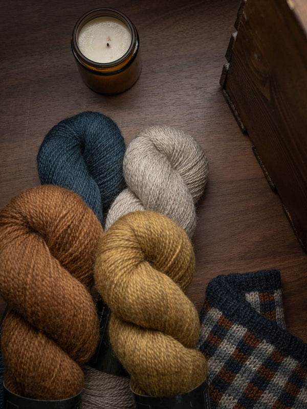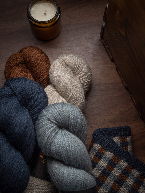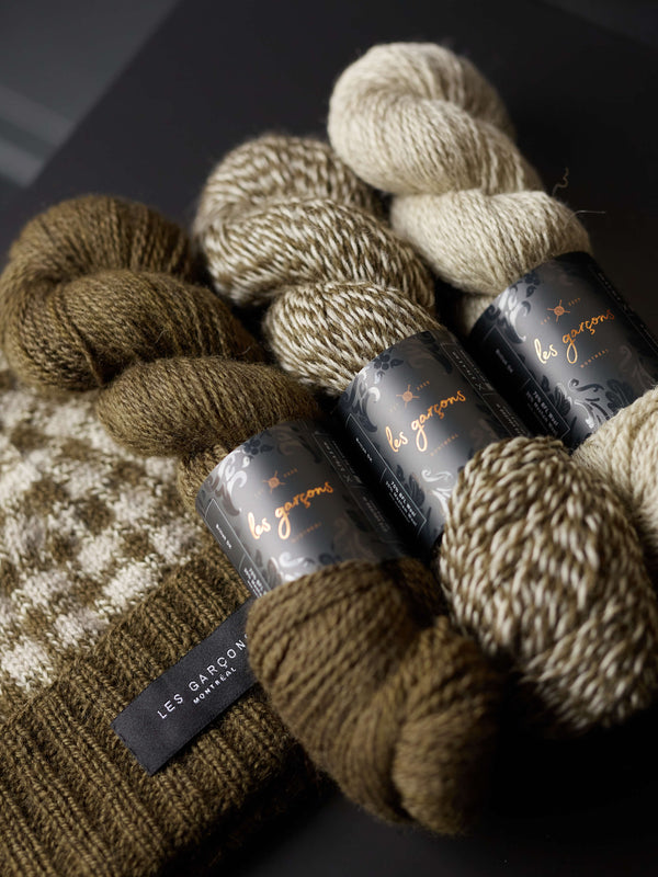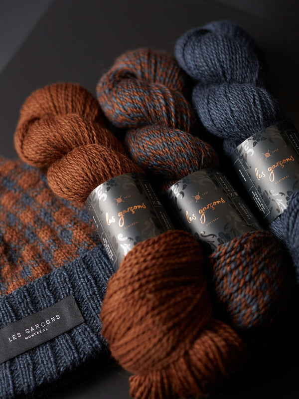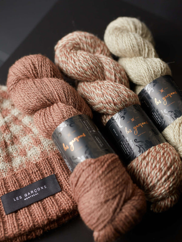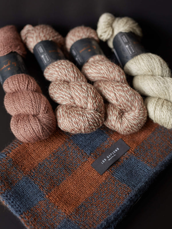 The Rustic Cabin Hat by Les Garçons is a cosy stranded colourwork hat pattern that features a classic gingham texture—created using one colourway of Marled British DK and the two corresponding solid colours—giving vintage charm with a modern twist. Featuring a wide brim for extra comfort, it’s the perfect accessory for chilly days.