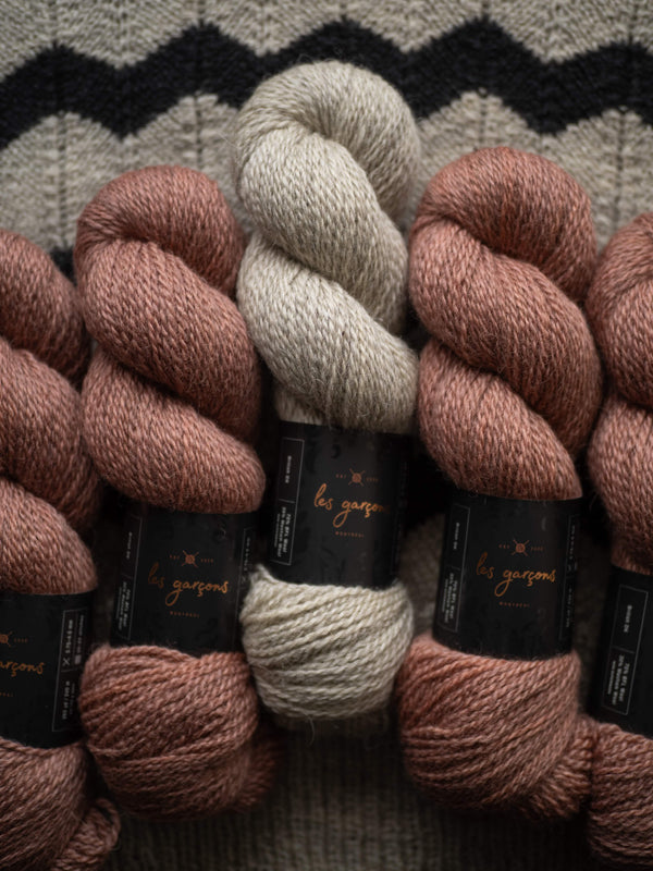 Named after lykke, the Scandinavian word for "luck" and "happiness," the Lykke pullover is a masterclass in elegant, effortless style. Designed by Sari Nordlund, this delicately detailed garment features a modern, boxy silhouette and dropped shoulders, offering a relaxed fit that doesn't sacrifice sophistication. The striking chevron motif is created through a sequence of increases and decreases rather than stranded colourwork. For a easier experience, he increases over the chevron pattern on the back and front neck are fully charted.