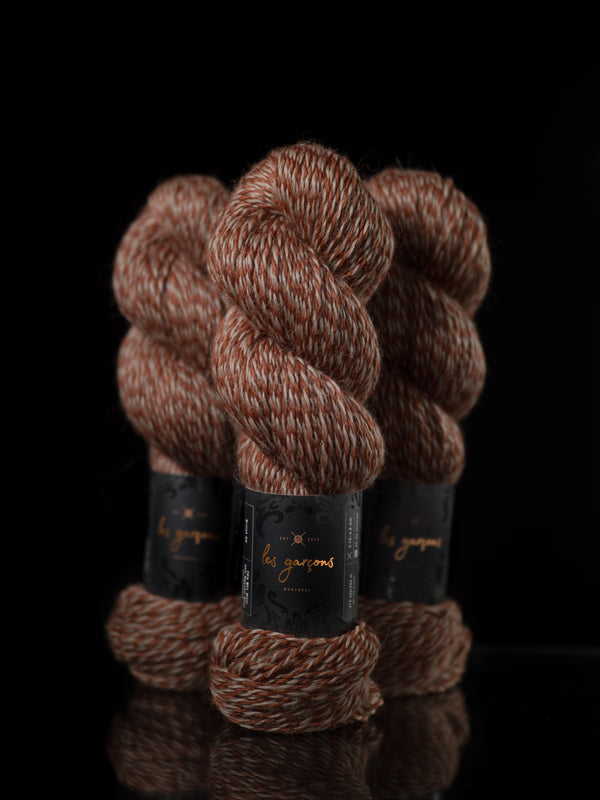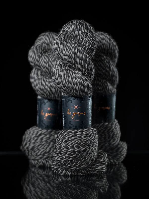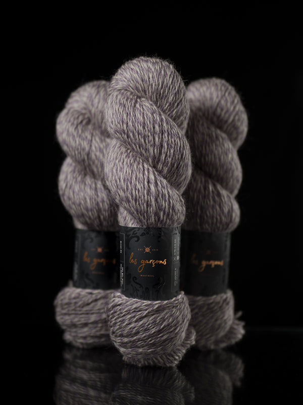 The British DK line from Les Garçons is expanding—introducing the Marled British DK! While working with our new mill, we created marled colourways to complement our solids. The specs of the Marled British DK match that of our British DK—they are interchangeable and can be used together with the same needle and at the same gauge.