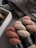 The kit includes the following colourways in the required quantities on British 4-Ply from Les Garçons. The pattern is not included; it is available in our shop or on Ravelry.