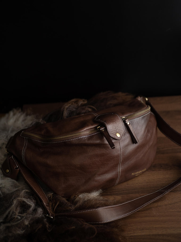 Project 96 is a spacious belt bag (also known as a "bum bag") designed with the modern knitter in mind. As always with RE:DESIGNED, this piece seamlessly blends practical functionality with refined aesthetics, ensuring your current project is always by your side, whether you are commuting or relaxing. It is designed to be more than just storage; the clever closure system turns it into a mobile yarn bowl, allowing you to knit comfortably wherever you are.