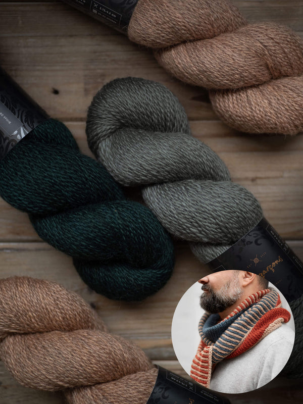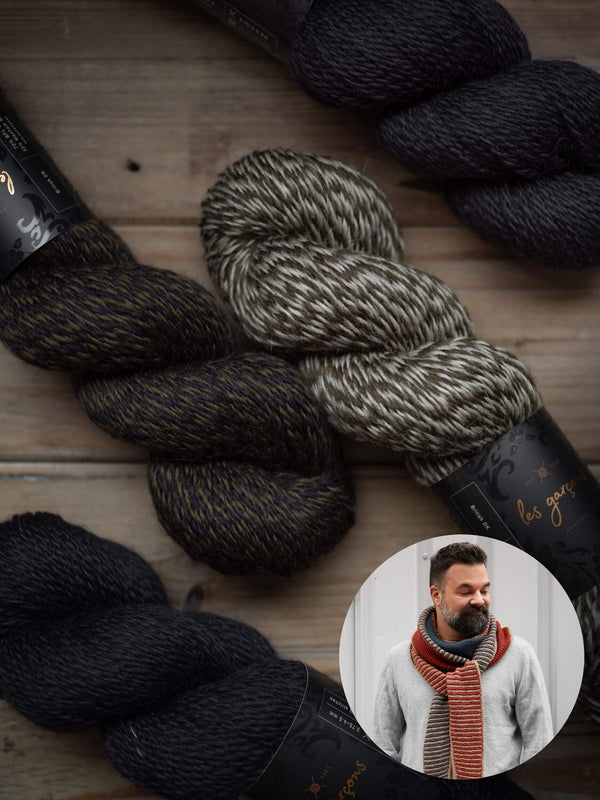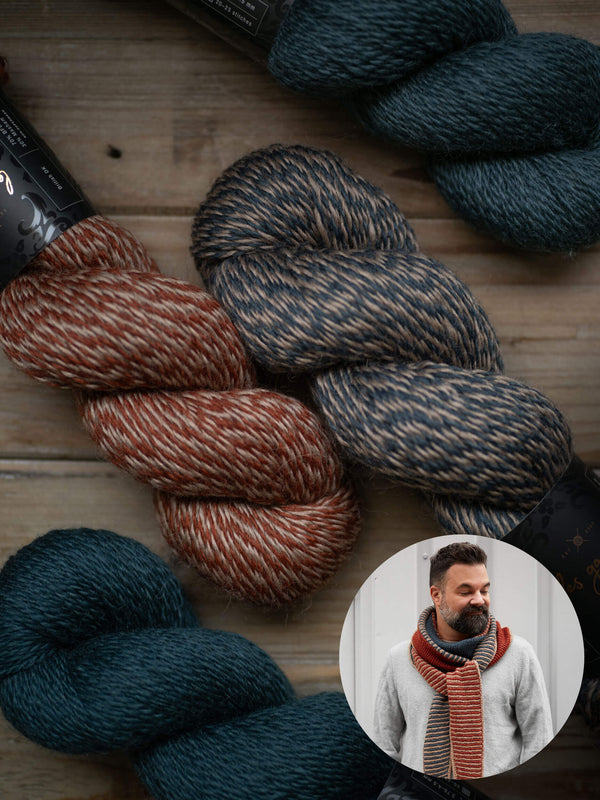 With its unusual construction, the Rocketeer Scarf by Maxim Cyr is a modular design where angular shapes come together in a way that is both playful and sophisticated. The scarf begins with two long striped triangles that are joined together to create the design’s signature form. From there, the rest of the scarf is worked one modular block at a time.