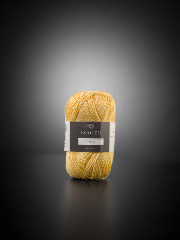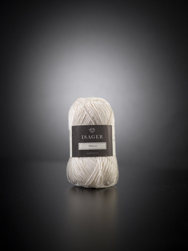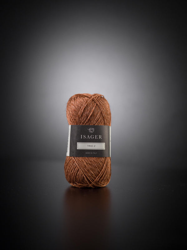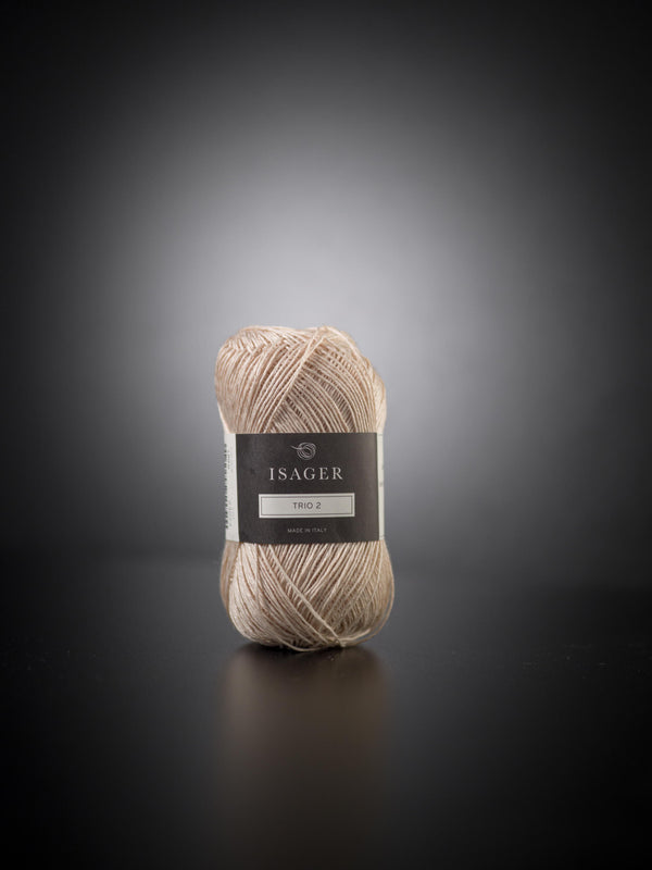 Trio 2 is made of 50% linen, 30% cotton and 20% Lyocell. This yarn can be used individually, with one, two, three or more strands, or it can be knitted with other of Isager's yarns. This yarn has 22 colours matching the other Isager colours – and can be combined endlessly