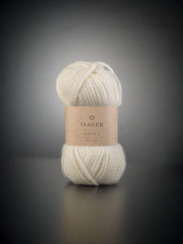 Alpaca 3 d’Isager est un fil à la construction unique. Tout comme Alpaca 2, il est composé à 50 % de laine et à 50 % d’alpaga, mais sa structure en chaînette lui confère un toucher particulièrement doux et aérien, idéal pour tricoter des pulls plus épais qui restent étonnamment légers.