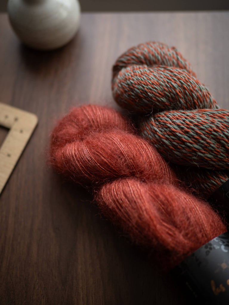 Le kit contient les coloris suivants dans les quantités requises sur les fils British DK et Mohair Silk de Les Garçons. Le patron n’est pas inclus; vous pouvez vous le procurer sur Ravelry.