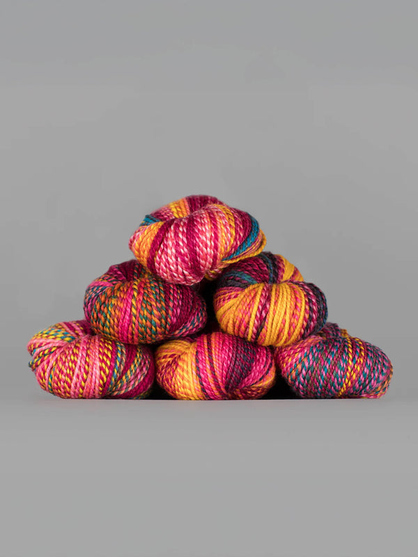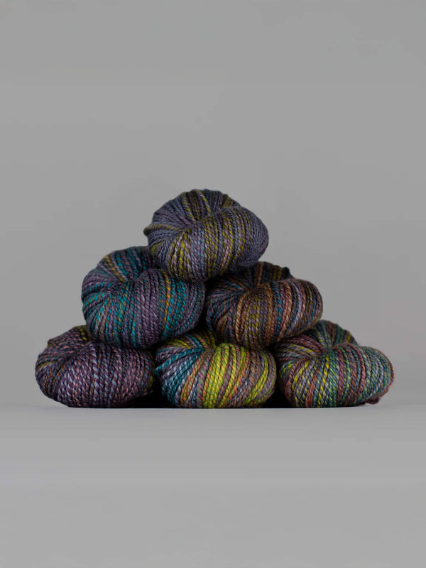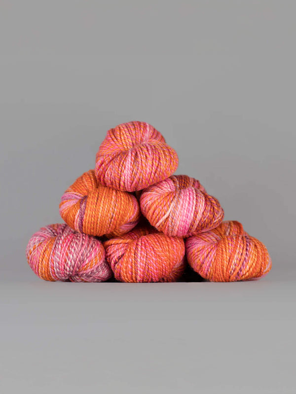 Dyed in the Wool de Spincycle Yarns est un fil fin de grosseur 2 (ou « sport ») soigneusement confectionné, connu pour son effet dégradé et ses transitions de couleurs envoûtantes. Doux, durable et source d'inspiration inépuisable, il est parfait pour tout projet, des pulls douillets aux accessoires audacieux.