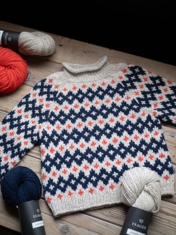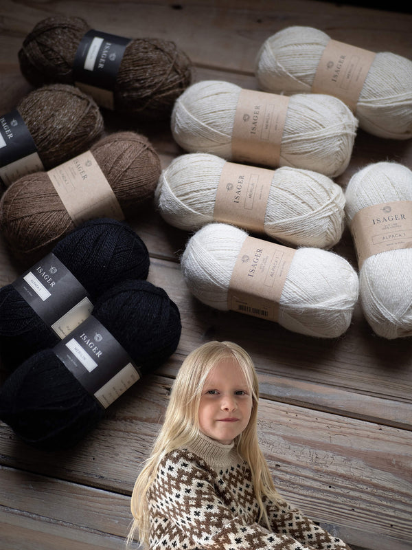 Le fil Jensen d’Isager est un excellent choix pour le Little Inge Sweater, tout comme il l’était pour la version adulte. Nous avons également créé un kit avec le doux mélange de Merilin et d’Alpaca 1, que la créatrice a utilisé pour une version dans des tons neutres.