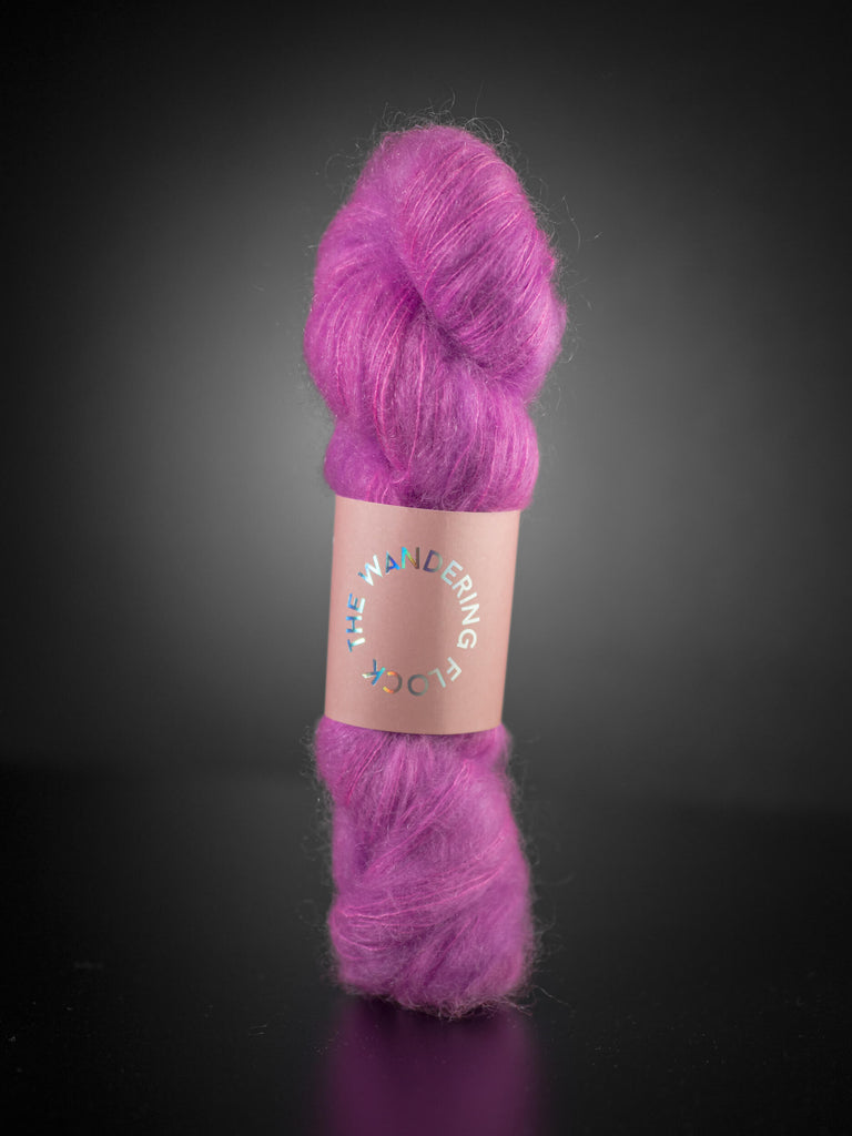 Le fil Mohair Lace de The Wandering Flock est un merveilleux fil dentelle qui associe le très jeune mohair (la qualité la plus fine de mohair) à une âme en soie. Avec un ratio mohair-soie plus élevé que la plupart des fils semblables, il absorbe magnifiquement les pigments, offrant des couleurs vibrantes et un supplément de « fluff » à chaque centimètre tricoté! D'une douceur incomparable, il est parfait pour des vêtements que vous adorerez porter directement sur votre peau. Utilisez-le seul avec une tension lâche pour créer un pull léger et aérien, ou associez-le à un autre fil pour ajouter une touche de couleur subtile et une aura vaporeuse à vos projets.