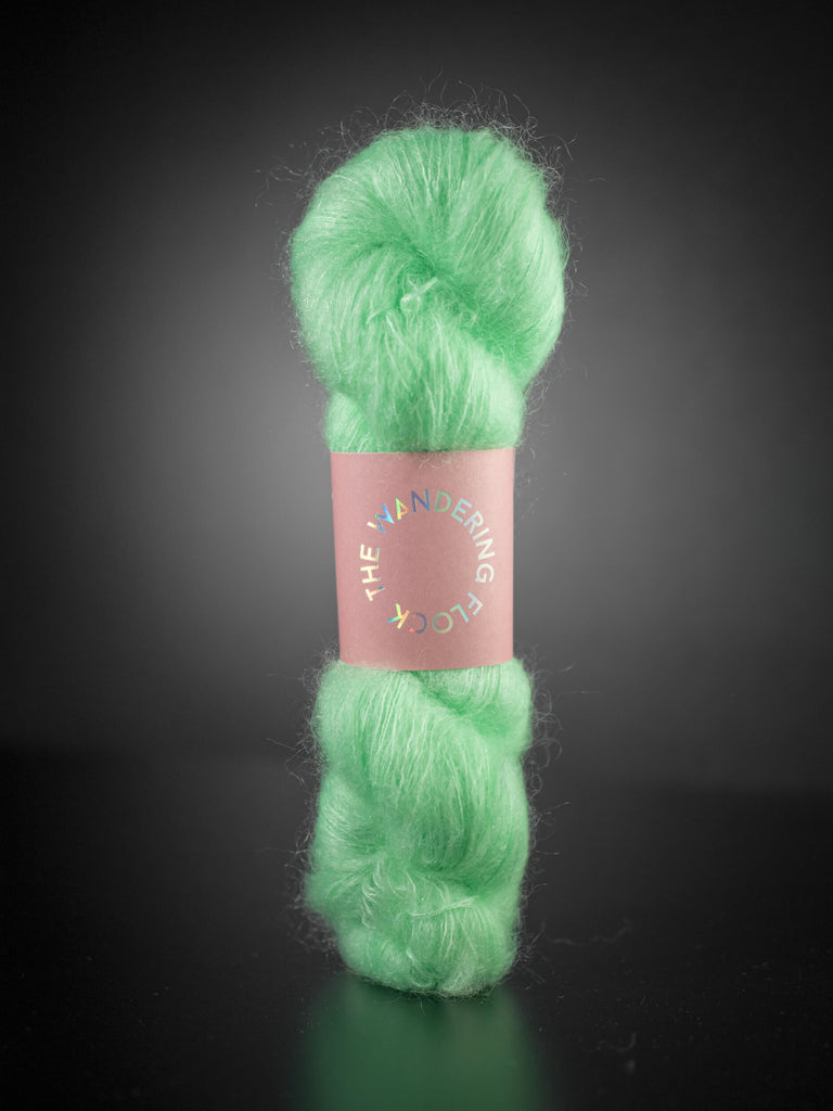 Le fil Mohair Lace de The Wandering Flock est un merveilleux fil dentelle qui associe le très jeune mohair (la qualité la plus fine de mohair) à une âme en soie. Avec un ratio mohair-soie plus élevé que la plupart des fils semblables, il absorbe magnifiquement les pigments, offrant des couleurs vibrantes et un supplément de « fluff » à chaque centimètre tricoté! D'une douceur incomparable, il est parfait pour des vêtements que vous adorerez porter directement sur votre peau. Utilisez-le seul avec une tension lâche pour créer un pull léger et aérien, ou associez-le à un autre fil pour ajouter une touche de couleur subtile et une aura vaporeuse à vos projets.
