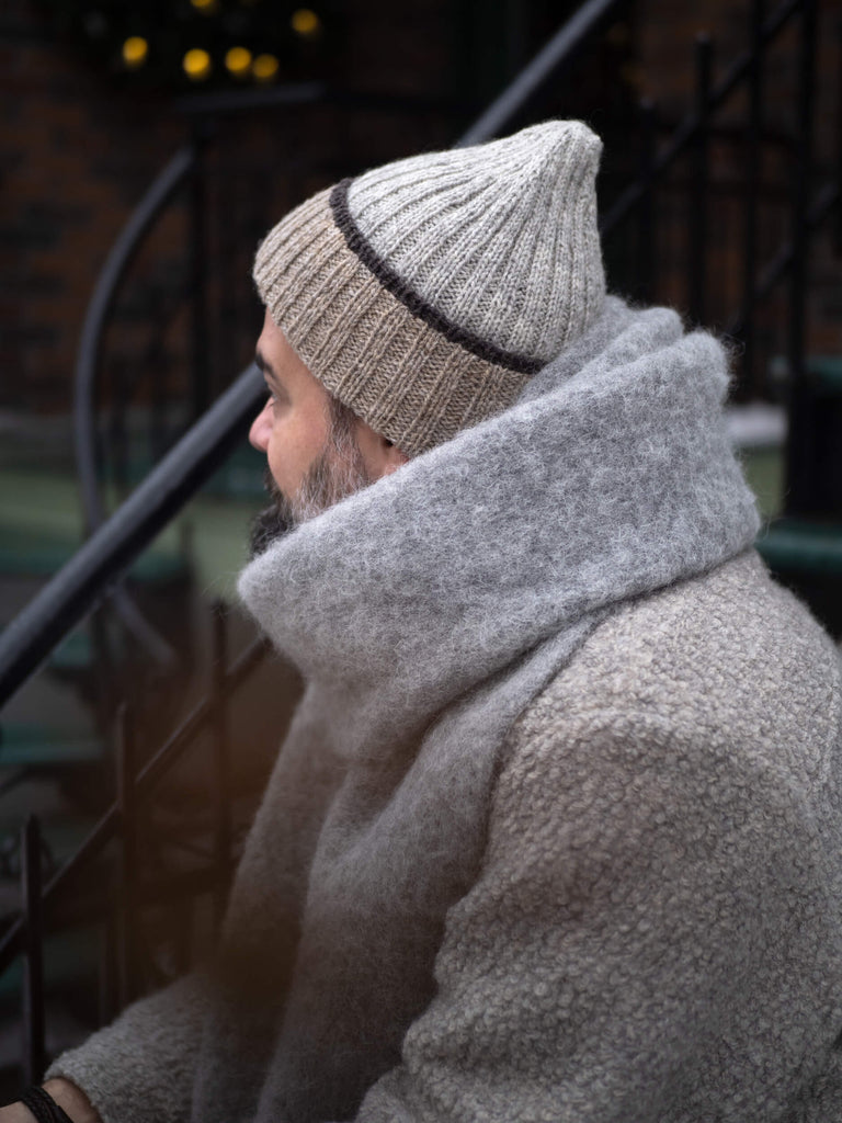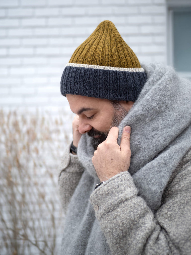 La tuque Studio est tricotée en commençant par le haut en côtes 2×2. Des mailles sont ensuite ajoutées jusqu’à ce que vous atteigniez la circonférence souhaitée. On change ensuite de couleur pour tricoter le bord, puis on termine par une petite section de côtes 1×1 dans une troisième couleur. Le rabattage à l’italienne vient donner un bord net et élastique. Les trois tailles comportent le même nombre de mailles; la circonférence finale dépend de votre tension.