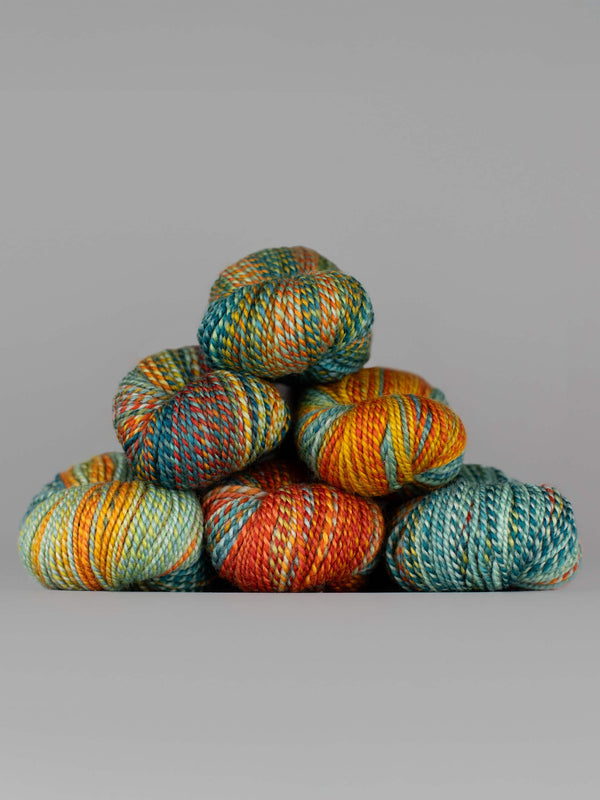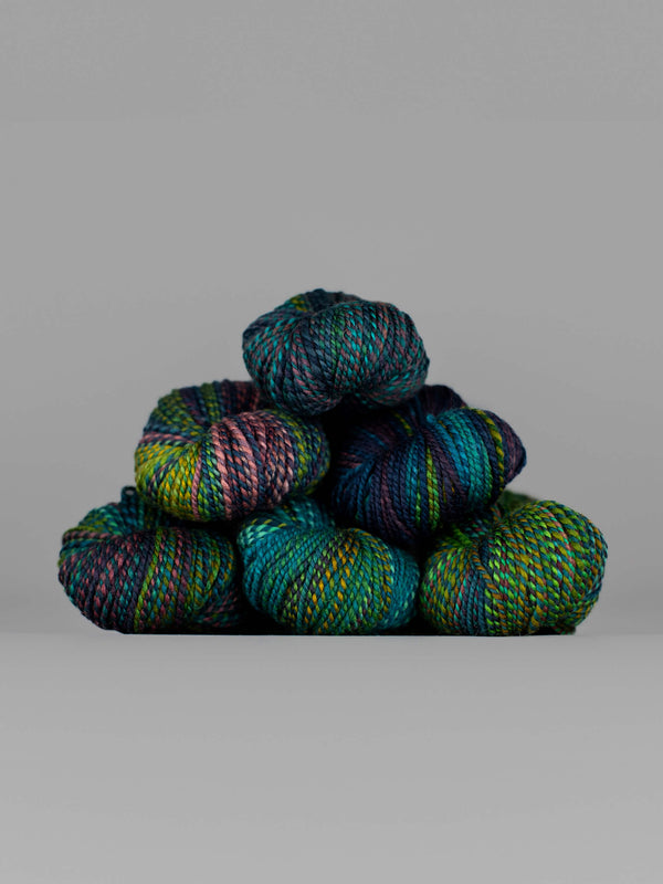 Dyed in the Wool de Spincycle Yarns est un fil fin de grosseur 2 (ou « sport ») soigneusement confectionné, connu pour son effet dégradé et ses transitions de couleurs envoûtantes. Doux, durable et source d'inspiration inépuisable, il est parfait pour tout projet, des pulls douillets aux accessoires audacieux.
