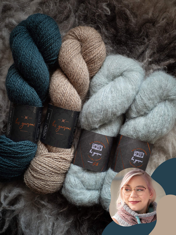 Le Snuggle is Real est l'un des premiers patrons de Maxim Cyr. Il s'agit d'un grand col douillet et ajustable présentant un motif amusant créé par des mailles glissées, ainsi qu'une doublure colorée et duveteuse.
