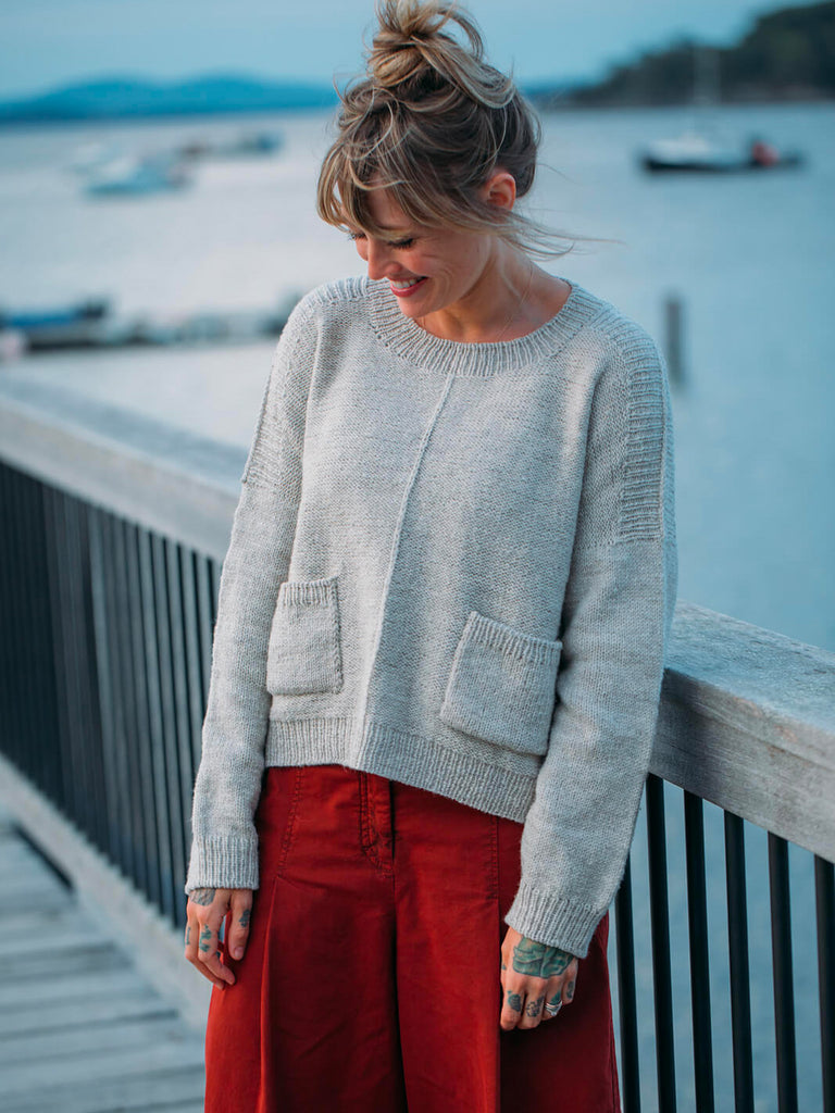Le chandail The Weekender Crew, de la designer Andrea Mowry, est une version réimaginée du The Weekender, maintenant devenu un classique. Il reprend les mêmes détails emblématiques de son prédécesseur – notamment les épaules tombantes, ainsi que la possibilité d’ajouter des poches de chaque côté à l’avant –, mais y ajoute une touche spéciale : un col rond au lieu du col bateau.