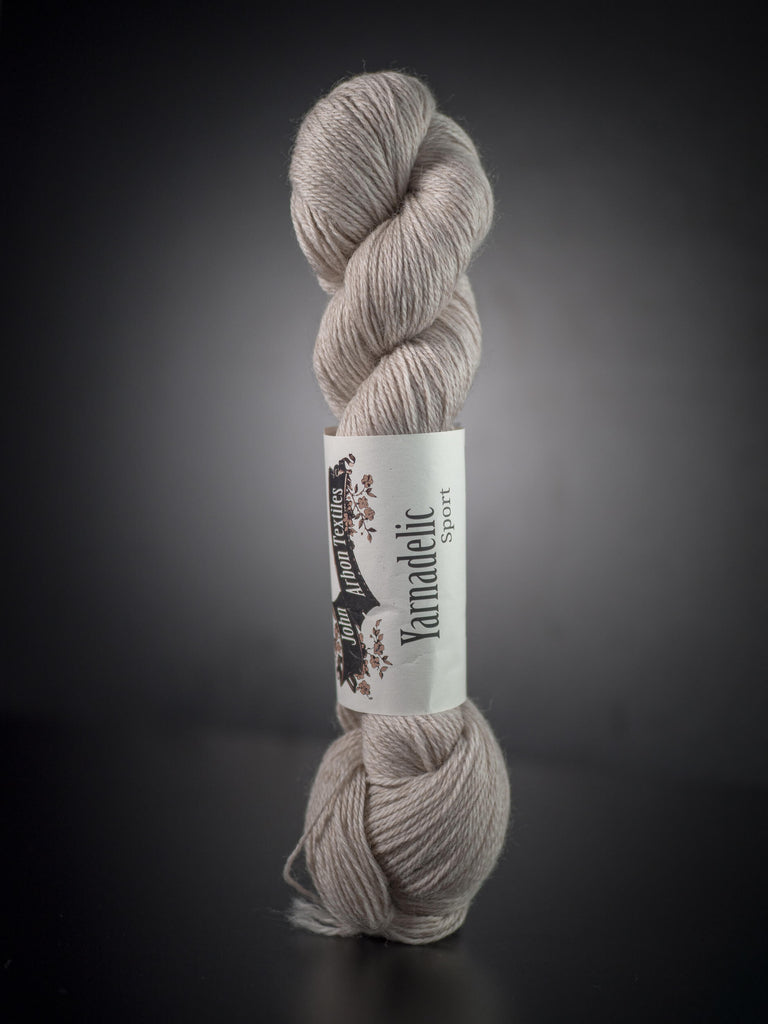 Yarnadelic Sport, de John Arbon Textiles, est un fil 100 % laine de corriedale des îles Malouines, une race qui existe depuis environ 100 ans. Il présente une structure arrondie à trois brins qui met en valeur la définition naturelle des mailles et le drapé de la fibre, ce qui en fait un excellent fil polyvalent pour tout type de projet, des torsades à la dentelle, en passant par les vêtements et les accessoires. La base Yarnadelic est également offerte en grosseur « worsted ».