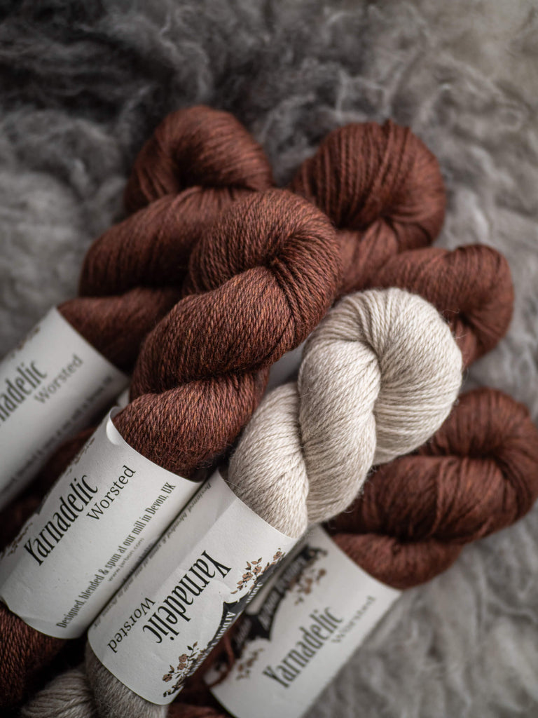 Le kit contient les coloris suivants dans les quantités requises sur le fil Yarnadelic Worsted de John Arbon Textiles. Le patron n’est pas inclus; vous pouvez vous le procurer dans notre boutique ou sur Ravelry.