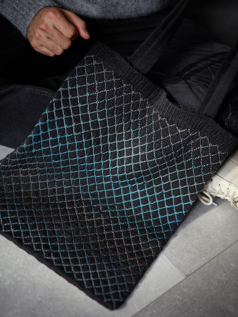 The Gardener’s Tote by Maxim Cyr is worked from the bottom up and features a striking trellis motif created by catching floats in front of the work and knitting them into the fabric, resulting in a stunning effect that beautifully showcases your favourite colour-changing yarn, like a skein of Dyed in the Wool from Spincycle Yarns. The handles are worked in the round to create a sturdy fabric strong enough to carry the tote bag and its content.