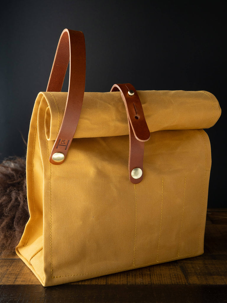 Hide & Hammers premium handmade canvas and leather knitting bag is the perfect combination of form and function. Easy to use and maintain, the #03 features internal pockets, and is large enough for sweater projects but not so bulky that a shawl would get lost in it.